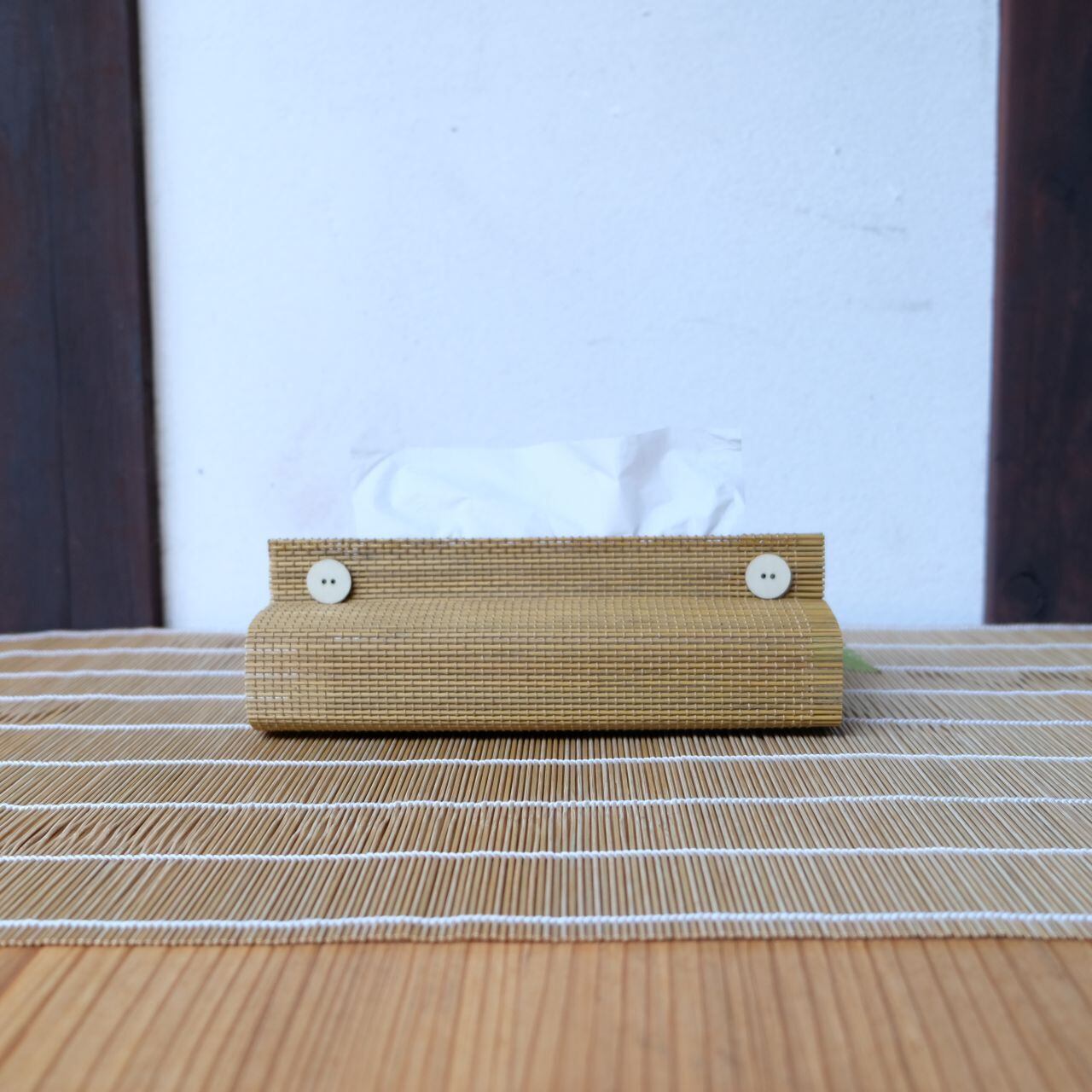 福岡県八女地域の特産品『竹すだれ』を使用したこのティッシュケースは、福岡県八女市福島地区の白壁通りにある「町家キュレーションおもやい」店舗でも八女観光のお土産としても人気の逸品です。