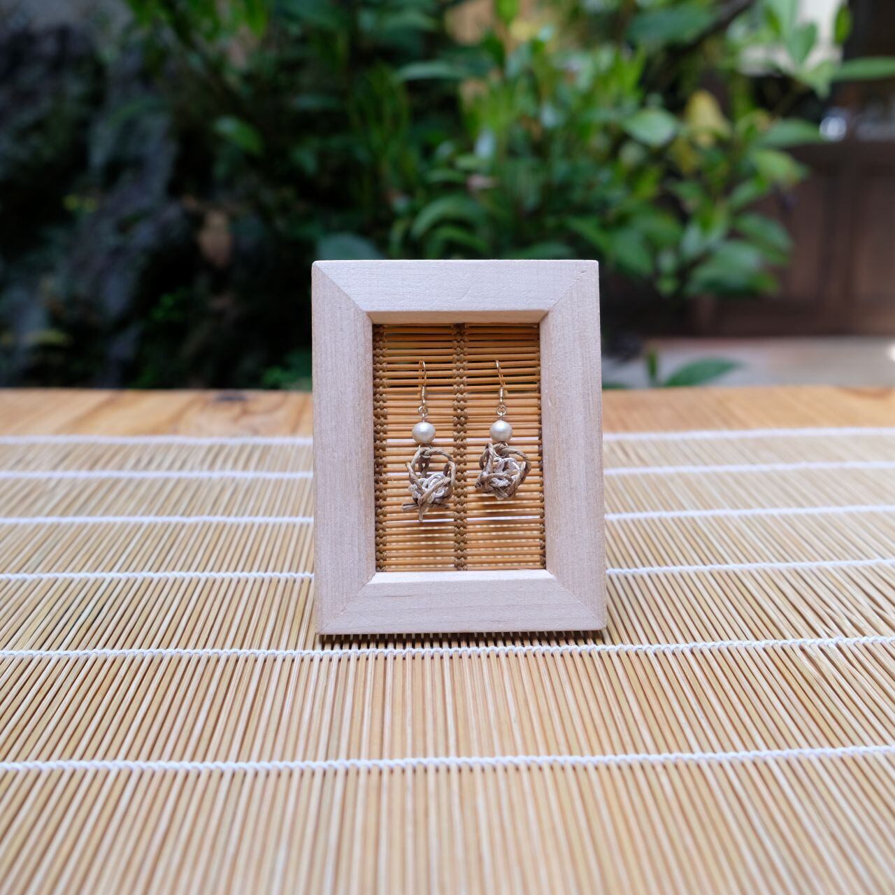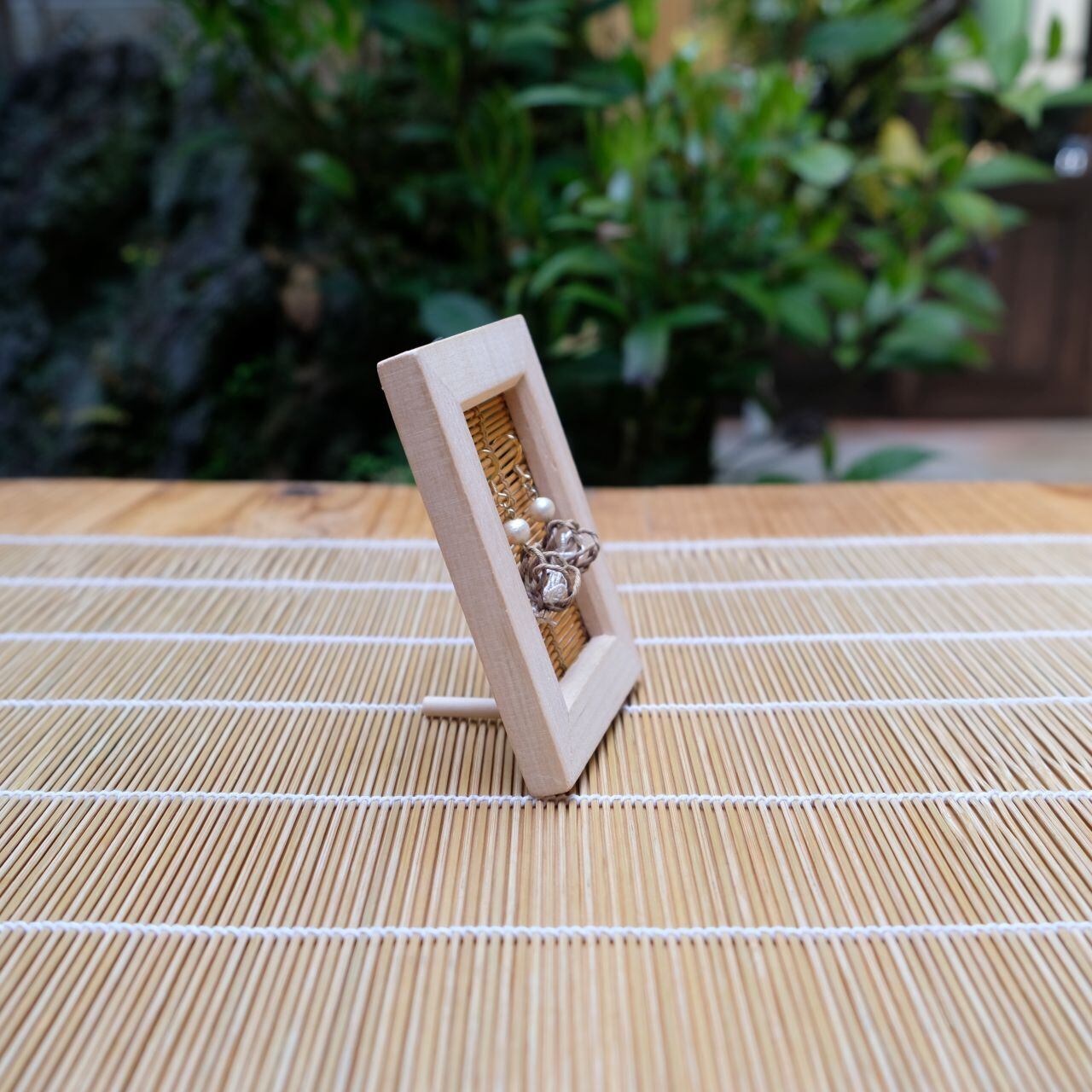 福岡県八女郡広川町の特産品の『竹すだれ』をピアスホルダーにしました。竹を細く均一に加工した竹ひごを一本一本編み込んで出来上がる『すだれ』の美しさを体感してください。