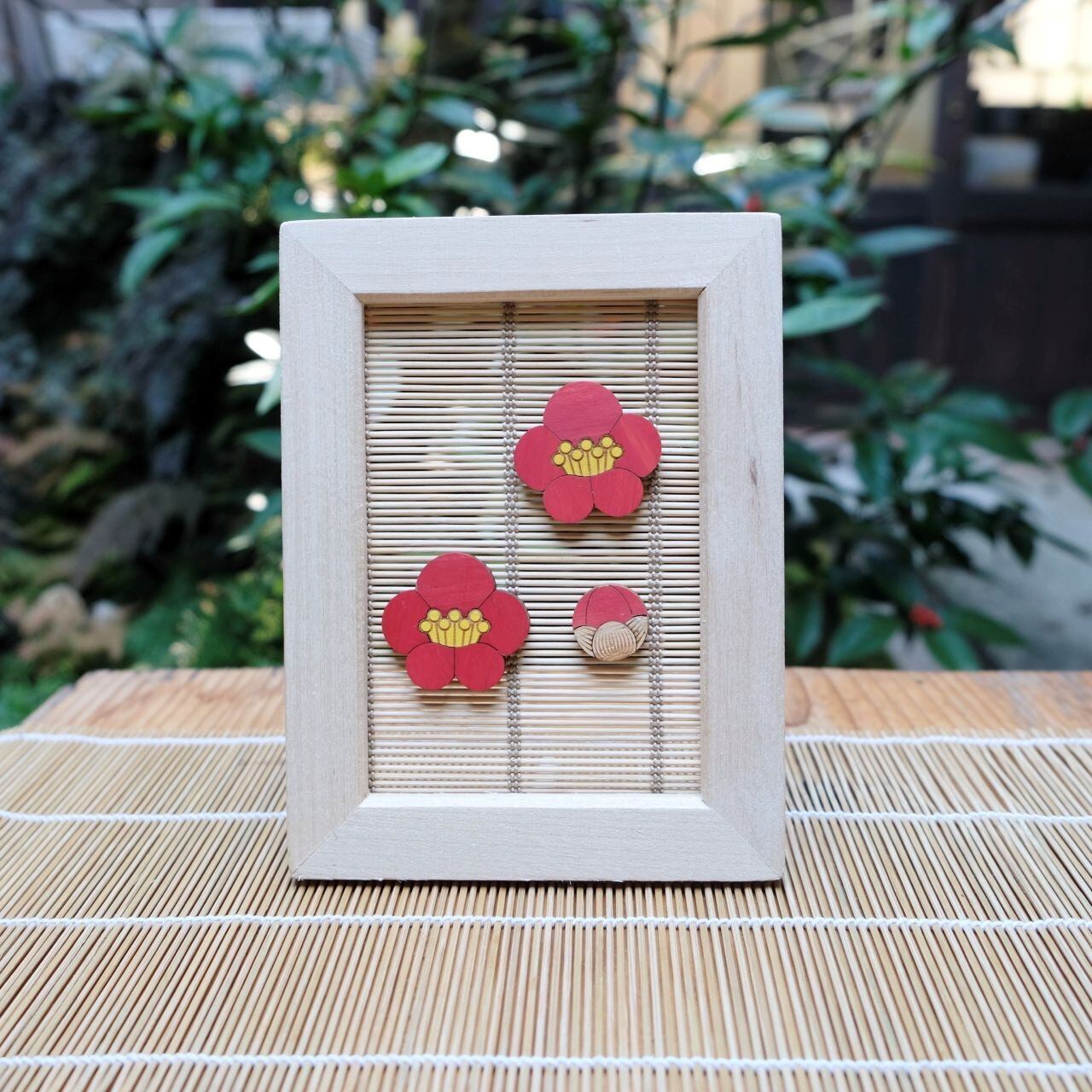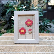 【ひのきマグネット】梅 赤 ブローチ メモ留め アートパネル