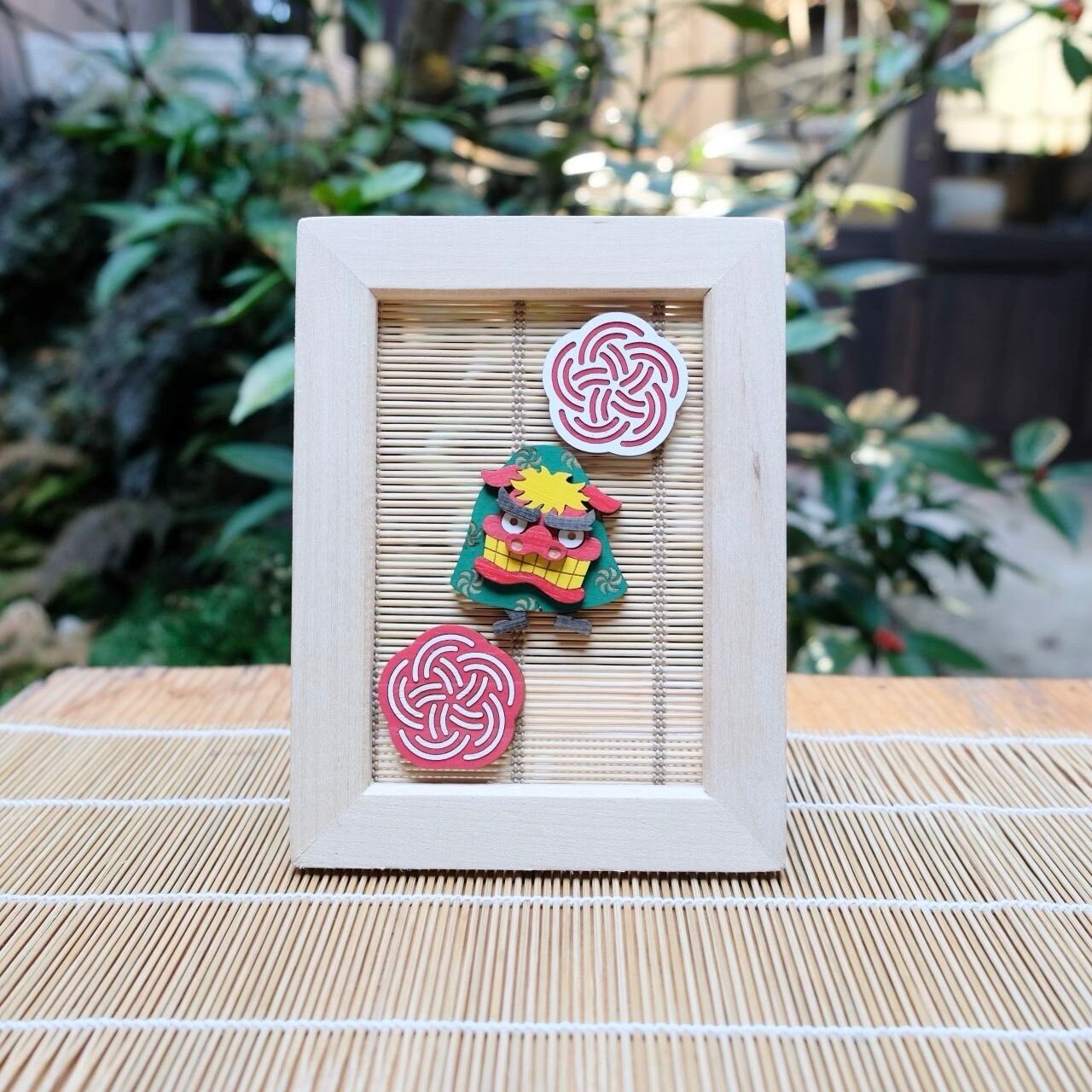 【ひのきマグネット】獅子舞 ブローチ メモ留め アートパネル