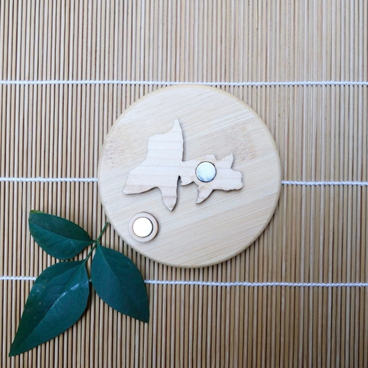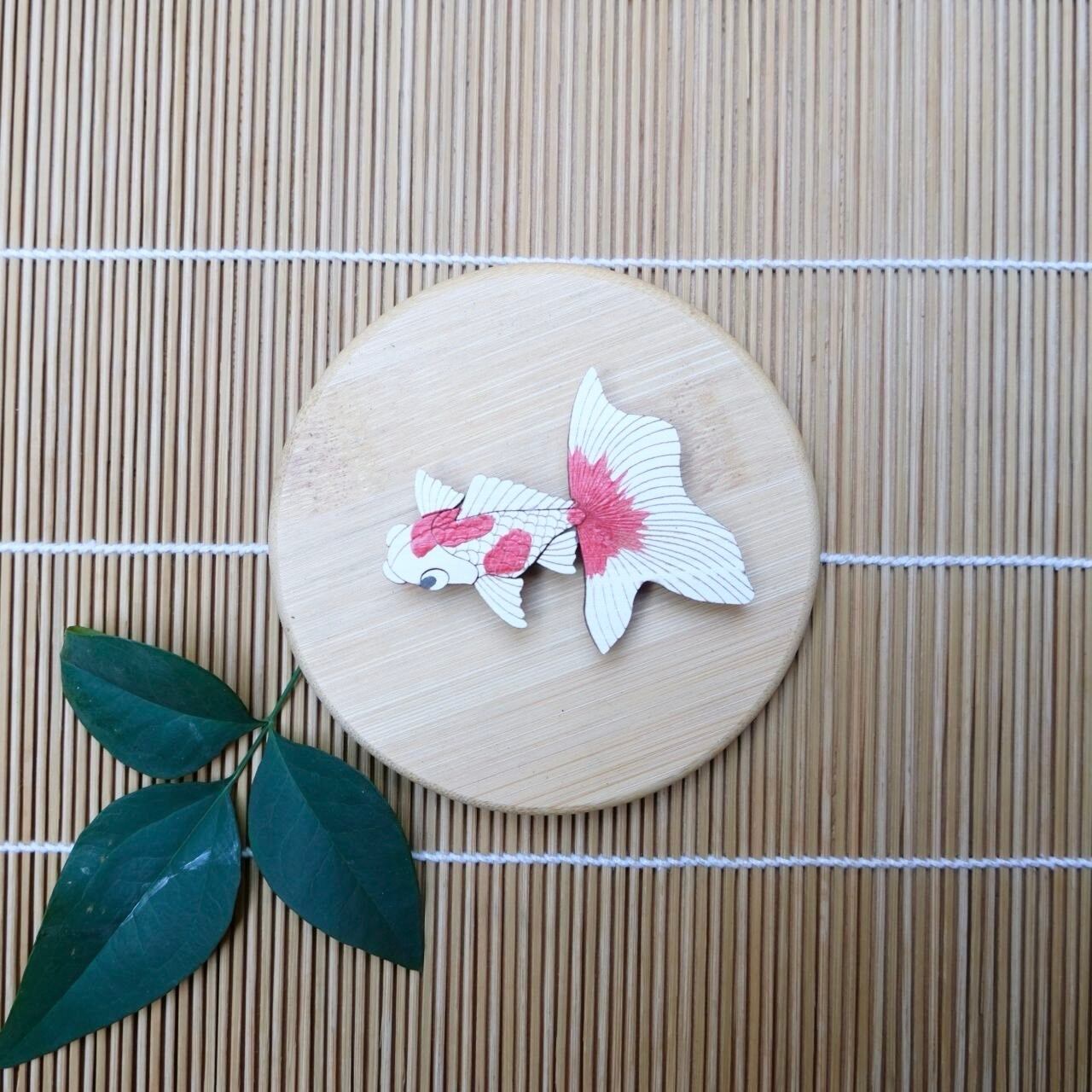 【ひのきマグネット】金魚 左向き 1 ブローチ メモ留め アートパネル