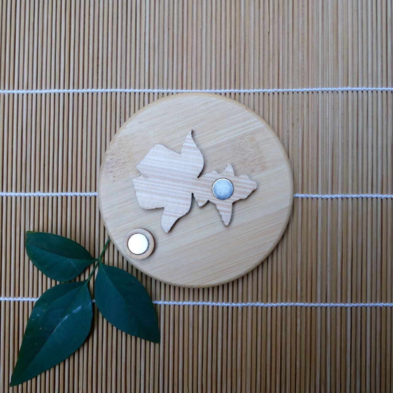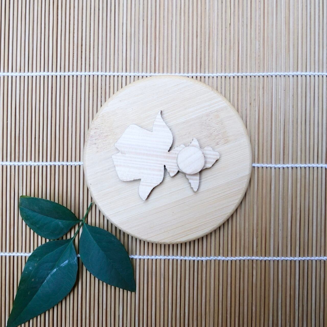 【ひのきマグネット】金魚 左向き 2 ブローチ メモ留め アートパネル