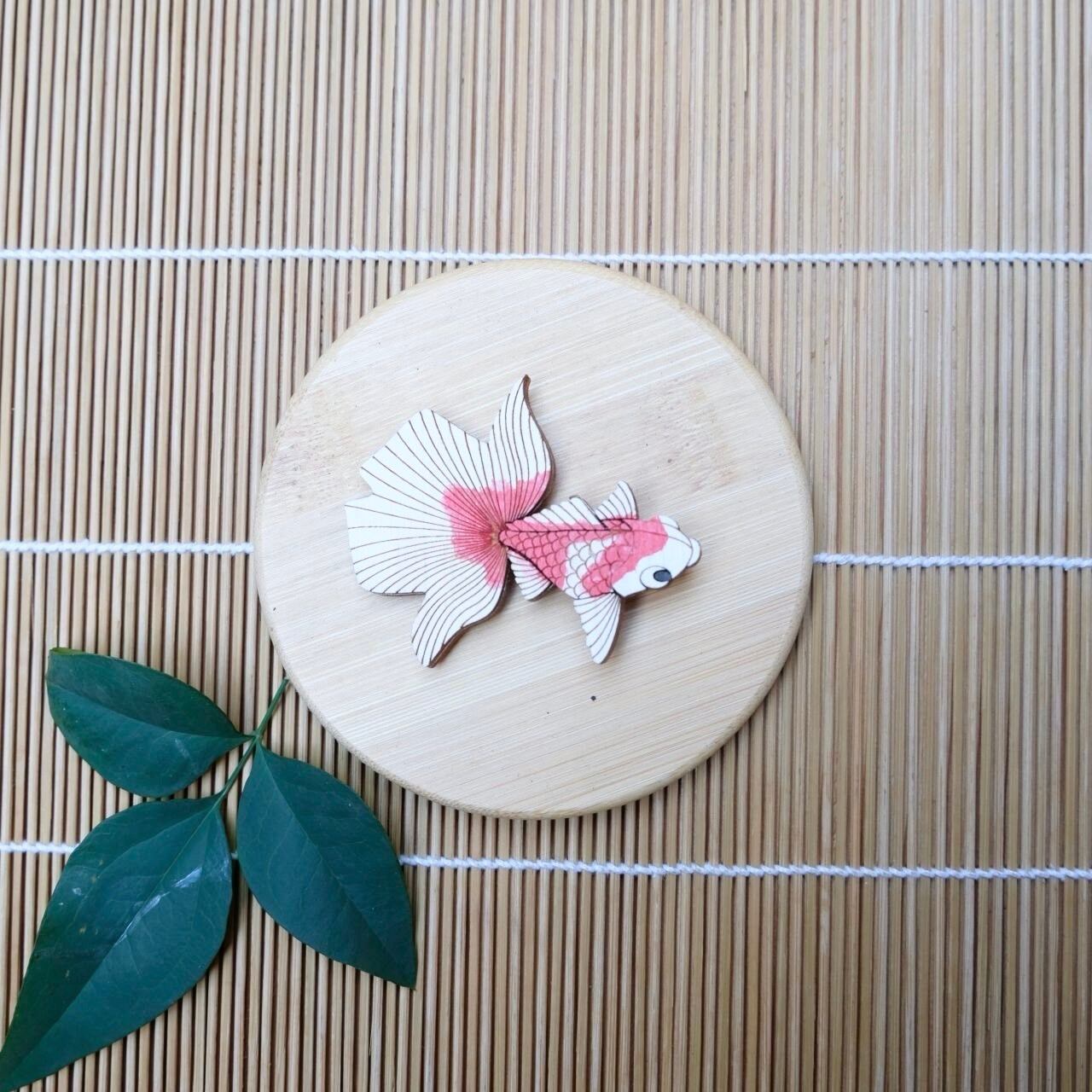 【ひのきマグネット】金魚 右向き 1 ブローチ メモ留め アートパネル