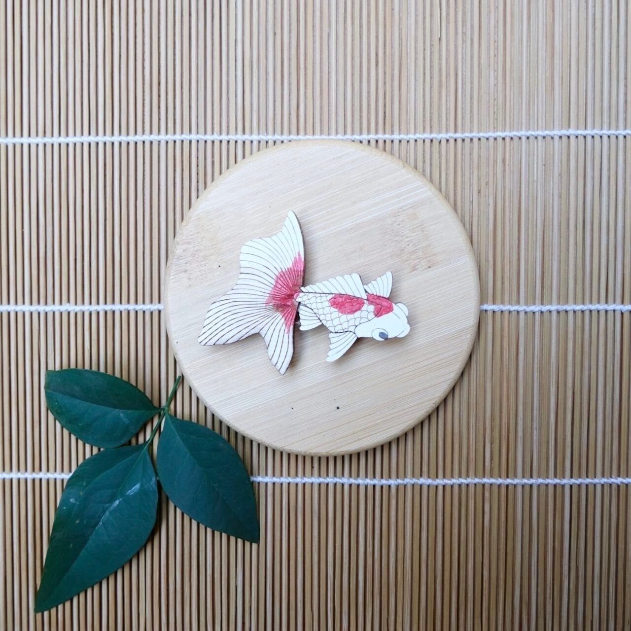 【ひのきマグネット】金魚 右向き 3 ブローチ メモ留め アートパネル