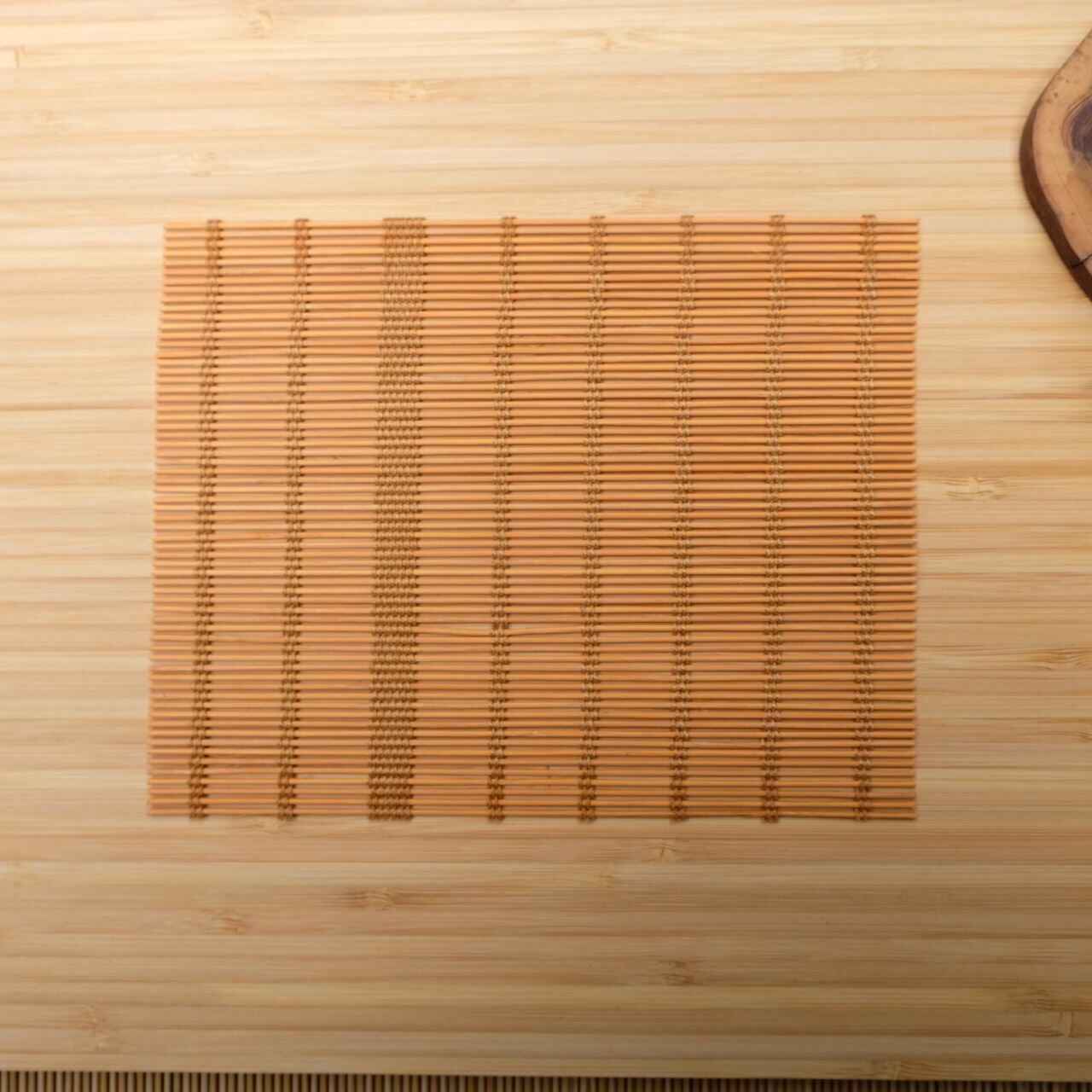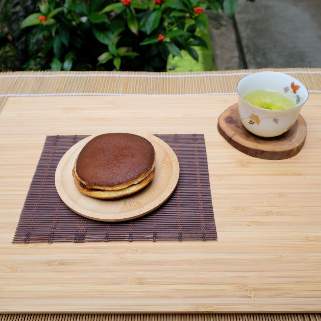 和の風情が漂う菓子敷です。竹の自然な風合いが暖かな雰囲気を醸し出し、テーブル上のおもてなしシーンを彩ります。