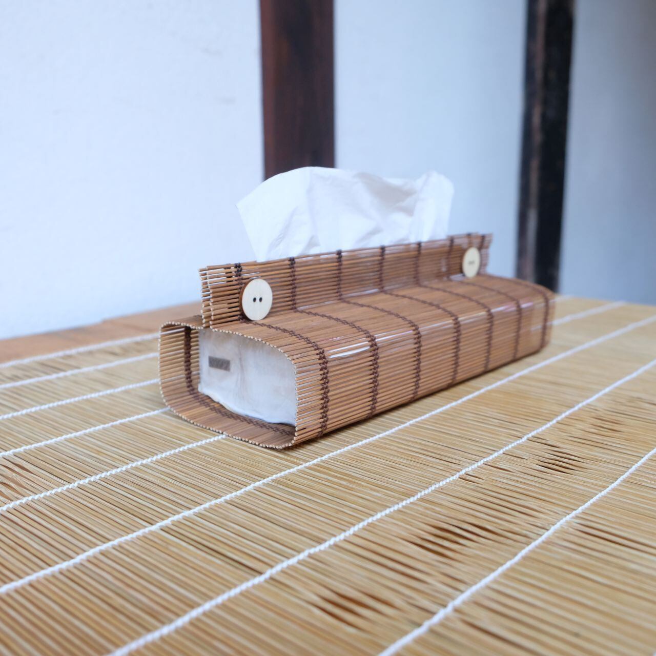 福岡県八女地域の特産品『竹すだれ』を使用したこのティッシュケースは、福岡県八女市福島地区の白壁通りにある「町家キュレーションおもやい」店舗でも八女観光のお土産としても人気の逸品です。